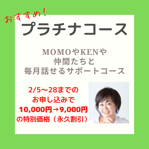 プラチナメンバーは、そこに毎月のZoomグループコンサルがつきますので、毎月MOMOやKENにお尻をたたいてほしい、もっと仲間たちと交流したい、疑問をすぐに解決したい方はプラチナメンバーがお得です。
