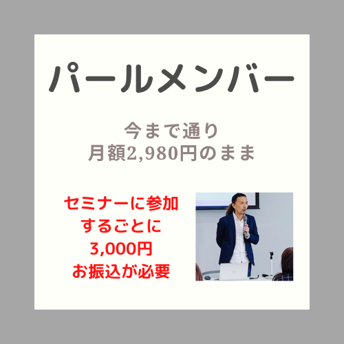 ①パールメンバー PayPalで月額2980円決済に移行する(セミナーごとに参加費必要)1ヶ月分会費が無料