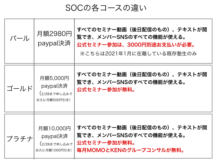 2/5からの彩塾オンラインコミュニティ(SOC)には、2種類の会員種別があります。